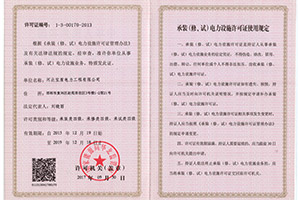 公司資質證件齊全。目前擁有電力工程施工總承包叁級資質、四級承裝(修、試)電力設施許可證。
